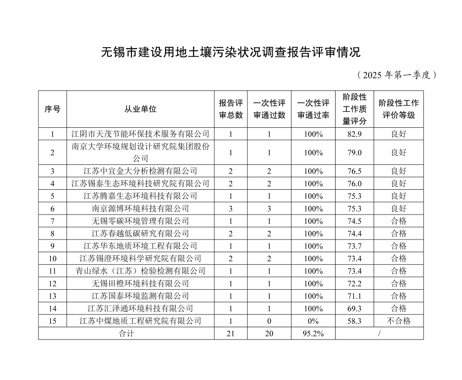 | 內(nèi)容概述 | 無錫市2025年第一季度建設(shè)用地土壤污染狀況調(diào)查報告評審情況 | ||||