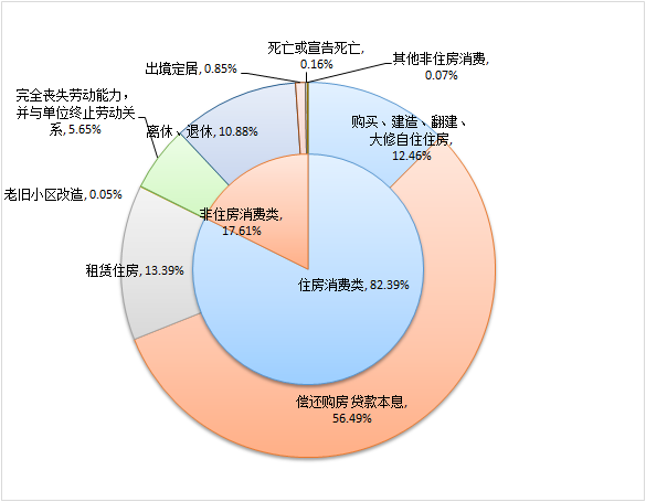 2025年一季度,住房消費(fèi)類(lèi)提取金額為60.86億元,環(huán)比增長(zhǎng)7.93%,占當(dāng)季提取額的82.39%。其中還貸提取占比最高,提取金額41.73億元,占當(dāng)季提取額的56.49%。具體提取結(jié)構(gòu)如下: