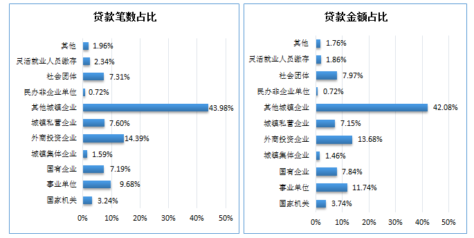 2025年一季度職工貸款筆數(shù)及貸款金額按單位性質(zhì)分類(lèi)占比圖