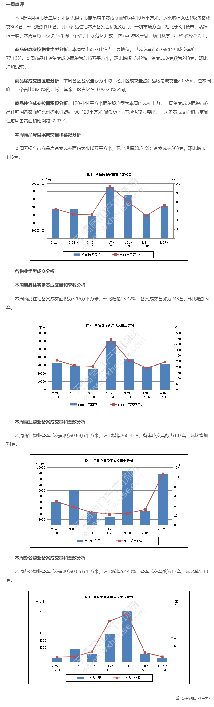 | 內(nèi)容概述 | 4.07~4.13無(wú)錫商品房一周備案成交4.10萬(wàn)平方米 | ||||