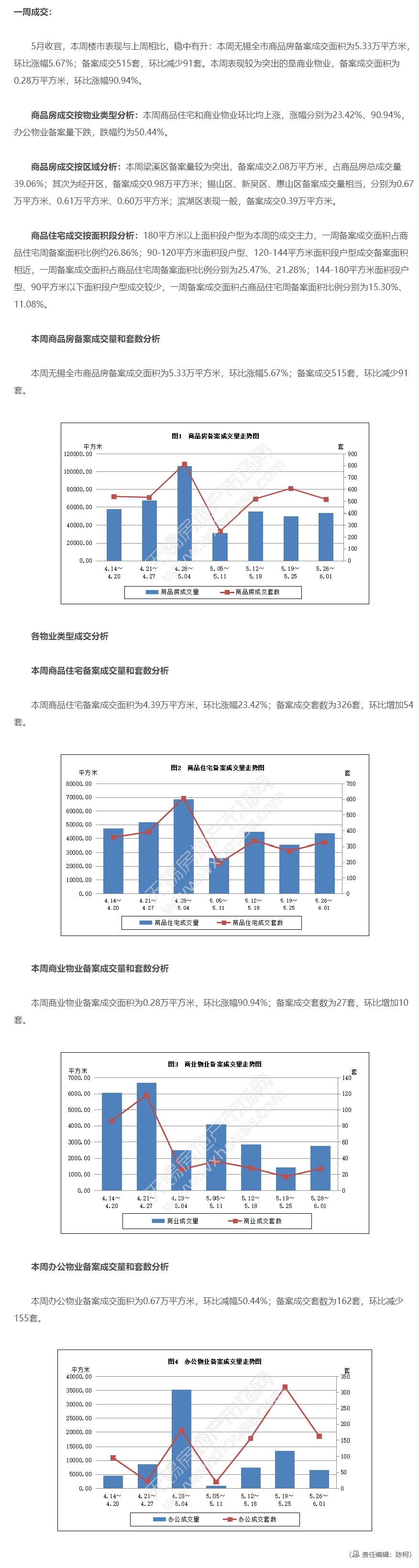 5.26~6.01無錫商品房一周備案成交5.33萬平方米 |