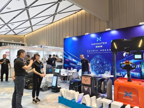 極富科技感的藍(lán)色背景前,AI室內(nèi)清潔機(jī)器人、巡邏機(jī)器人、室內(nèi)外智能搬運(yùn)機(jī)器人等大小、形態(tài)各異的產(chǎn)品一應(yīng)俱全。此次首進(jìn)內(nèi)地參展,諾科達(dá)科技集團(tuán)帶來(lái)了一整套智能機(jī)器人矩陣。