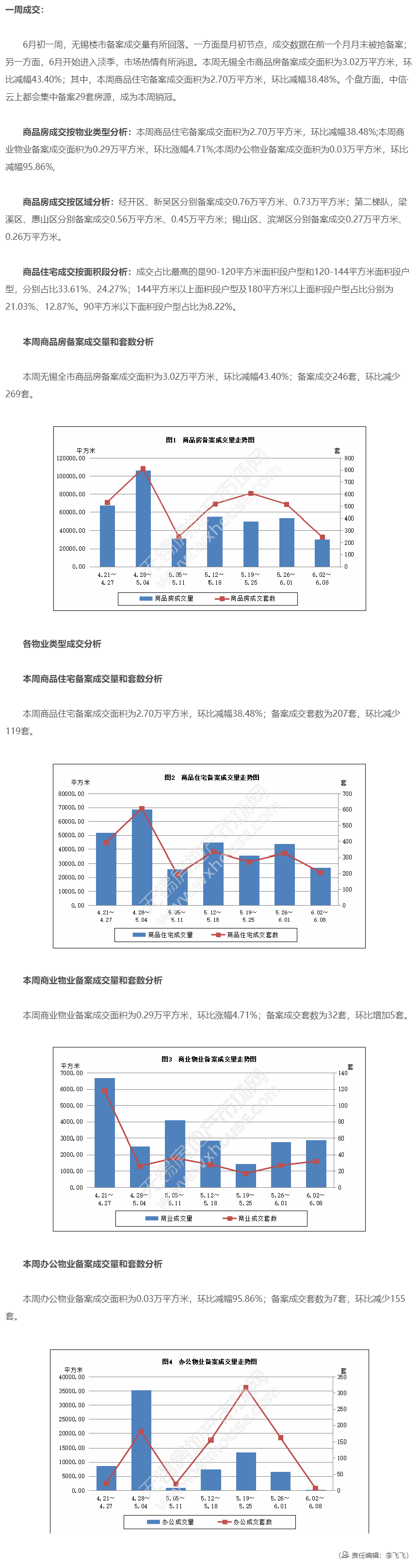 | 內(nèi)容概述 | 6.02~6.08無(wú)錫商品房一周備案成交3.02萬(wàn)平方米 | ||||