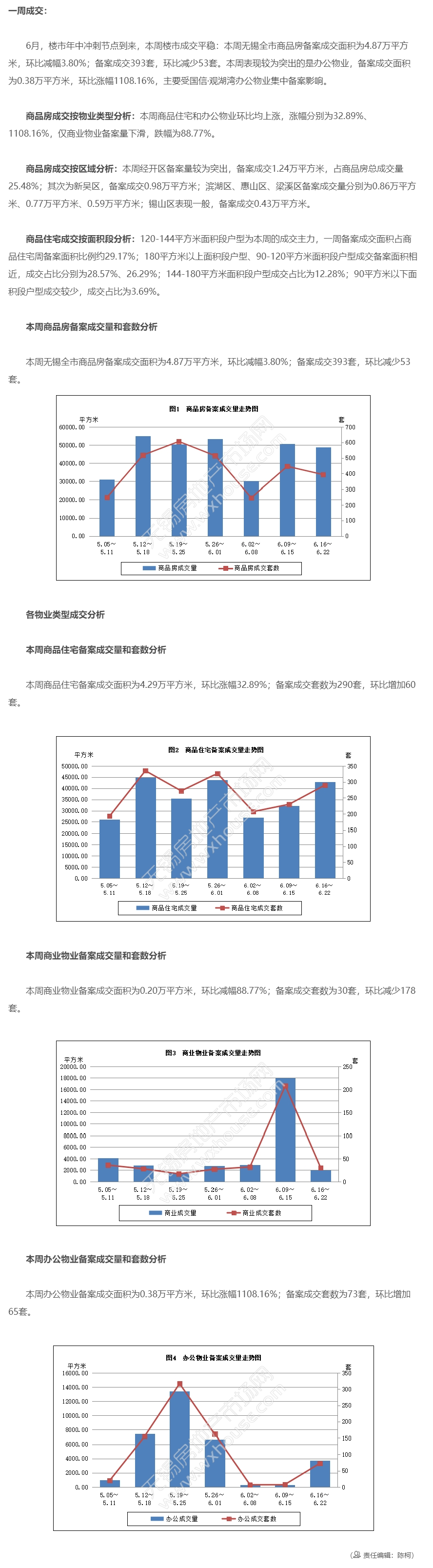 6.16~6.22無錫商品房一周備案成交4.87萬平方米 |