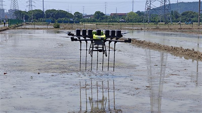 隨著一架無人機(jī)騰空而起,裹著棕色“防護(hù)衣”的稻種被精準(zhǔn)播撒成行,僅用4分鐘就完成了4畝地的播種。這是近日無錫錫山國家現(xiàn)代農(nóng)業(yè)產(chǎn)業(yè)園太湖水稻示范園開展的“鐵粉包衣稻種無人機(jī)精量條播技術(shù)與健身栽培試驗(yàn)”現(xiàn)場(chǎng),此次試驗(yàn)融合了農(nóng)業(yè)“黑科技”與綠色栽培理念,將為長江下游稻區(qū)勾勒出智慧農(nóng)業(yè)的新圖景。