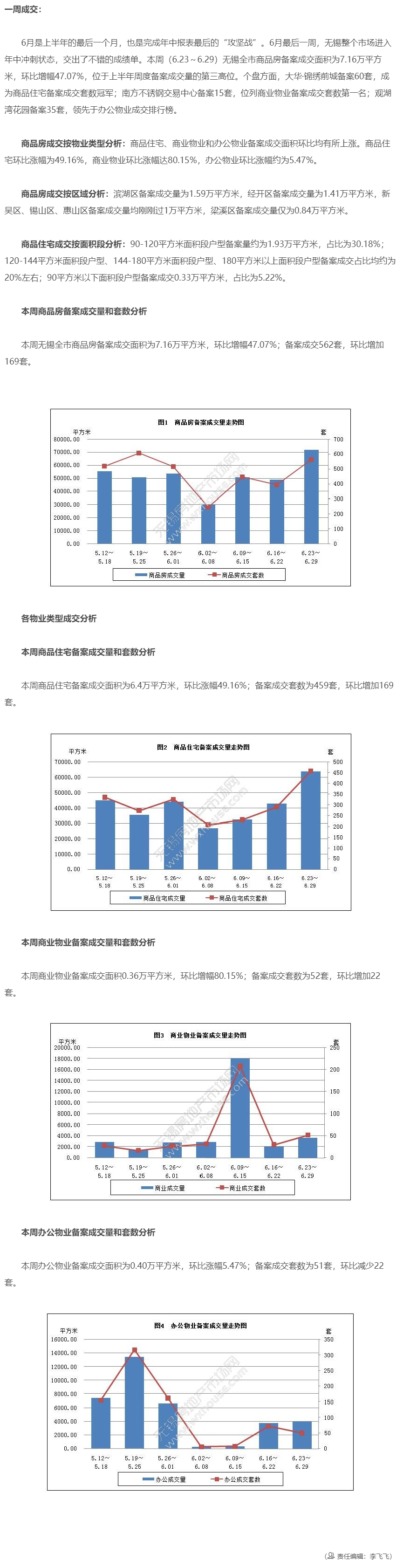 6.23~6.29無錫商品房一周備案成交7.16萬平方米 |