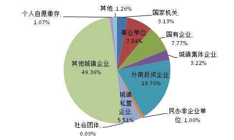 2020年二季度實(shí)繳職工數(shù)按不同性質(zhì)單位分類占比圖