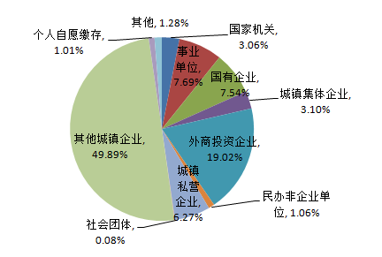 2020年四季度實(shí)繳職工數(shù)按不同性質(zhì)單位分類占比圖