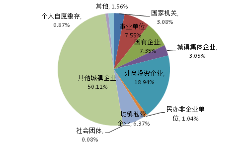 2021年一季度實繳職工數(shù)按不同性質單位分類占比圖