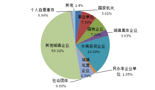 2021年二季度實(shí)繳職工數(shù)按不同性質(zhì)單位分類占比圖