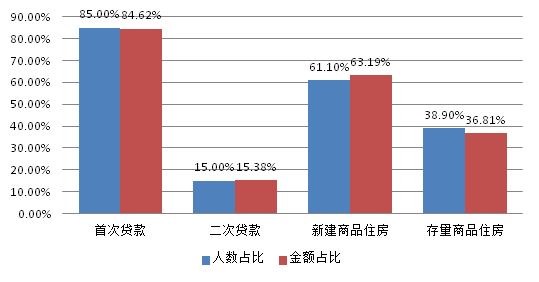 從貸款群體來看,剛需與改善型住房需求職工分別占貸款總?cè)藬?shù)的31.76%和61.36%。從單位性質(zhì)來看,以城鎮(zhèn)私營企業(yè)及其他城鎮(zhèn)企業(yè)職工為主,貸款筆數(shù)和貸款金額占比分別為48.12%、46.05%。從購房面積來看,職工貸款購買小于90㎡、90-120㎡房屋居多,分別占貸款總?cè)藬?shù)的31.76%、37.24%。從主借人繳存基數(shù)來看,貸款主要以中、低收入職工為主,分別占貸款總?cè)藬?shù)的30.78%、67.04%。從貸款類型來看,純公積金貸款和組合貸款占比分別為51.07%、48.93%。從貸款結(jié)構(gòu)來看,首次公積金貸款職工占貸款總?cè)藬?shù)的85%,第二次住房公積金貸款人數(shù)占15%,說明我市住房公積金貸款政策在保障剛需職工需求,體現(xiàn)住房公積金互助性方面發(fā)揮了較大的作用,住房公積金制度的初衷未改變。具體放貸結(jié)構(gòu)如下: