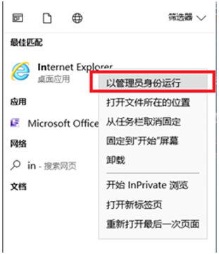 處理方法:右鍵點擊ie圖標(biāo),在菜單中選擇“以管理員身份運(yùn)行”。