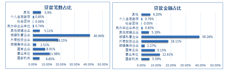2021年四季度職工貸款筆數(shù)及貸款金額按單位性質分類占比圖