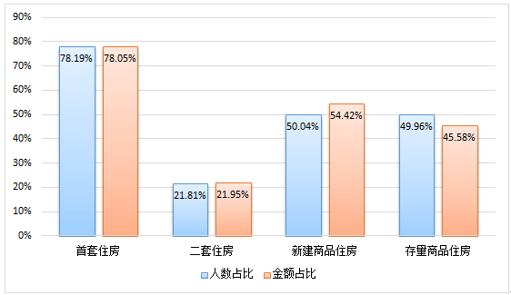 從貸款群體來(lái)看,剛需與改善型住房需求職工分別占貸款總?cè)藬?shù)的26.93%和65.56%。從單位性質(zhì)來(lái)看,以城鎮(zhèn)私營(yíng)企業(yè)及其他城鎮(zhèn)企業(yè)職工為主,貸款筆數(shù)和貸款金額占比分別為51.58%、49.23%。從購(gòu)房面積來(lái)看,職工貸款購(gòu)買90(不含)-120㎡房屋居多,占貸款總?cè)藬?shù)的40.28%。從主借人繳存基數(shù)來(lái)看,貸款主要以中、低收入職工為主,分別占貸款總?cè)藬?shù)的27.6%、71.39%。從貸款類型來(lái)看,純公積金貸款和組合貸款占比分別為59.78%、40.22%。從貸款結(jié)構(gòu)來(lái)看,首套住房公積金貸款職工占貸款總?cè)藬?shù)的78.19%,二套住房公積金貸款人數(shù)占21.81%。具體放貸結(jié)構(gòu)如下: