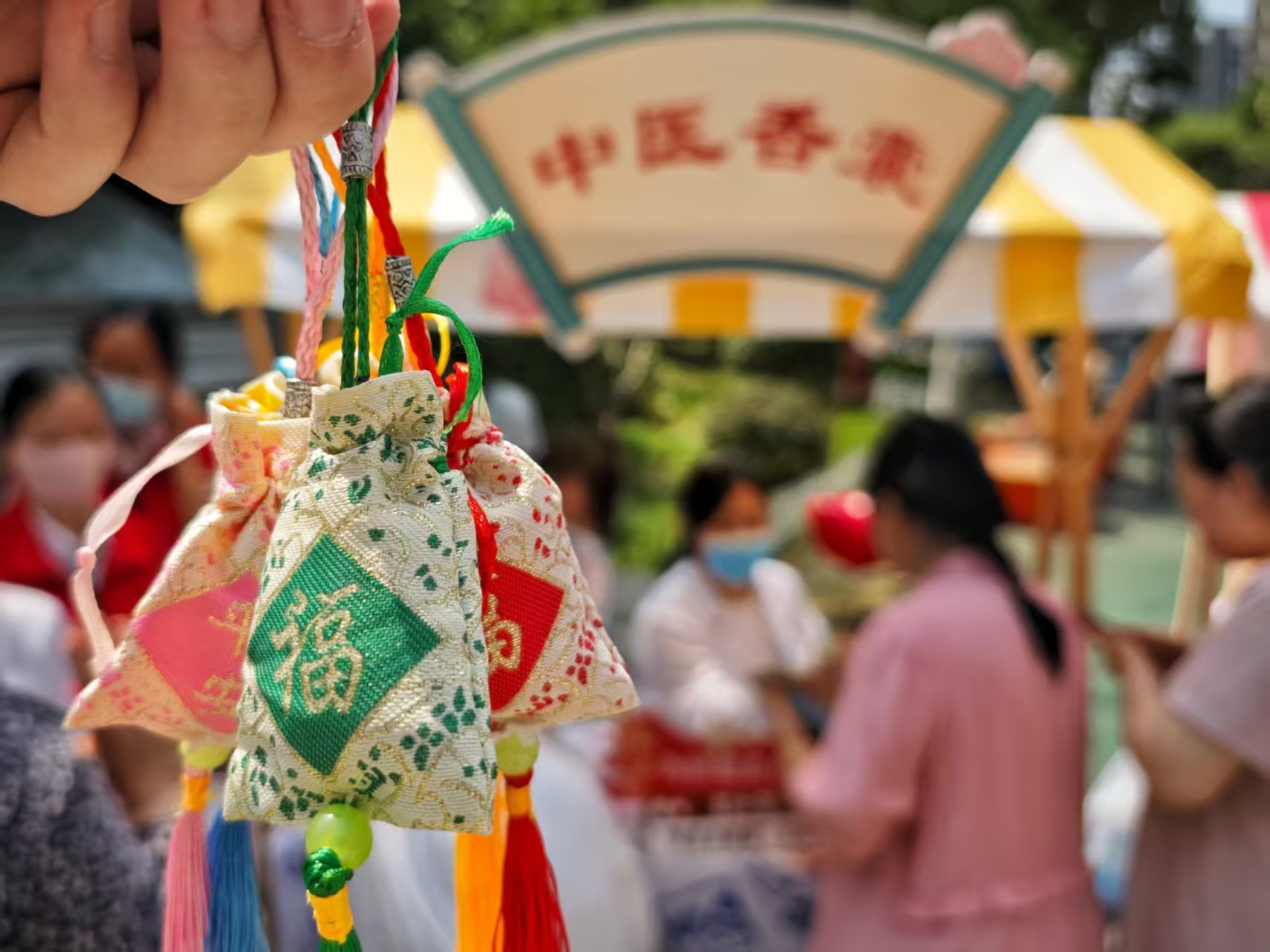從“望聞問(wèn)切”的中醫(yī)義診到“藥食同源”的茶飲品鑒,這條貫穿傳統(tǒng)智慧與現(xiàn)代健康的服務(wù)鏈,讓居民在艾草氤氳中切身感受中醫(yī)藥“上工治未病”的千年智慧?;顒?dòng)現(xiàn)場(chǎng),無(wú)錫市康復(fù)醫(yī)院門(mén)診黨支部的專(zhuān)家團(tuán)隊(duì)整齊“擺攤”,為社區(qū)居民測(cè)量血壓、血糖,現(xiàn)場(chǎng)搭脈問(wèn)診,精準(zhǔn)指出居民體質(zhì)狀況,并給出相應(yīng)的中醫(yī)調(diào)理方案。康復(fù)理療區(qū),治療師利用專(zhuān)業(yè)儀器為低頭族和久坐族松解肌肉,并傳授自我保健技巧。中醫(yī)香囊區(qū),藥師精選艾葉、廣藿香、佩蘭、紫蘇葉、石菖蒲等多味天然中藥材,科學(xué)配比研磨,指導(dǎo)居民將藥粉裝入繡著帶有“安康潤(rùn)心”寓意的香囊中。