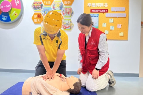 生命守護(hù),分秒必爭(zhēng)。聚焦關(guān)心關(guān)愛(ài)新就業(yè)群體,將專(zhuān)業(yè)的急救知識(shí)轉(zhuǎn)化為外賣(mài)騎手可學(xué)可用的“護(hù)身符”,組織開(kāi)展急救知識(shí)普及培訓(xùn)。專(zhuān)業(yè)醫(yī)護(hù)人員通過(guò)人體模型手把手教授心肺復(fù)蘇、AED的使用方法以及海姆立克急救法。