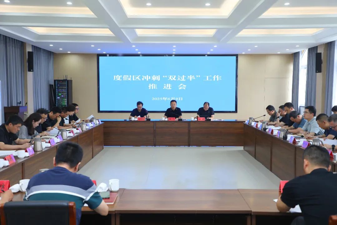 6月9日,市委常委,度假區(qū)黨工委書記、管理辦主任任飛主持召開度假區(qū)沖刺“雙過半”工作推進會,傳達學習上級相關會議精神,研究貫徹落實舉措,部署奮力沖刺“雙過半”各項重點工作。一區(qū)四鎮(zhèn)、陽羨旅游集團主要領導、分管領導以及相關部門負責人參加會議。