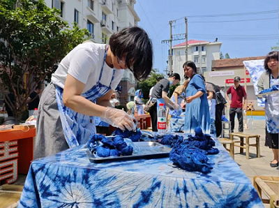“扎染分為漿洗、浸色、固色等多個(gè)環(huán)節(jié)……今天我們?cè)镜脑牧鲜前逅{(lán)根……”近日,“青黛微光”非遺扎染體驗(yàn)活動(dòng)在揚(yáng)名街道蘆東社區(qū)頤康居舉辦也標(biāo)志著頤康居非遺扎染體驗(yàn)所正式開(kāi)放。